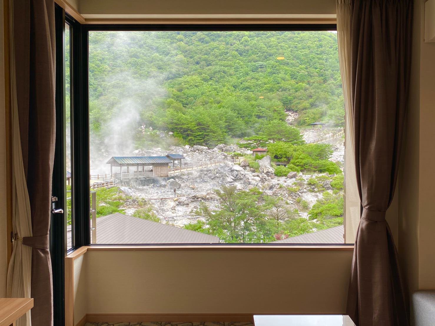 地面からは温泉水がぐつぐつ音を立てて湧き出しています。